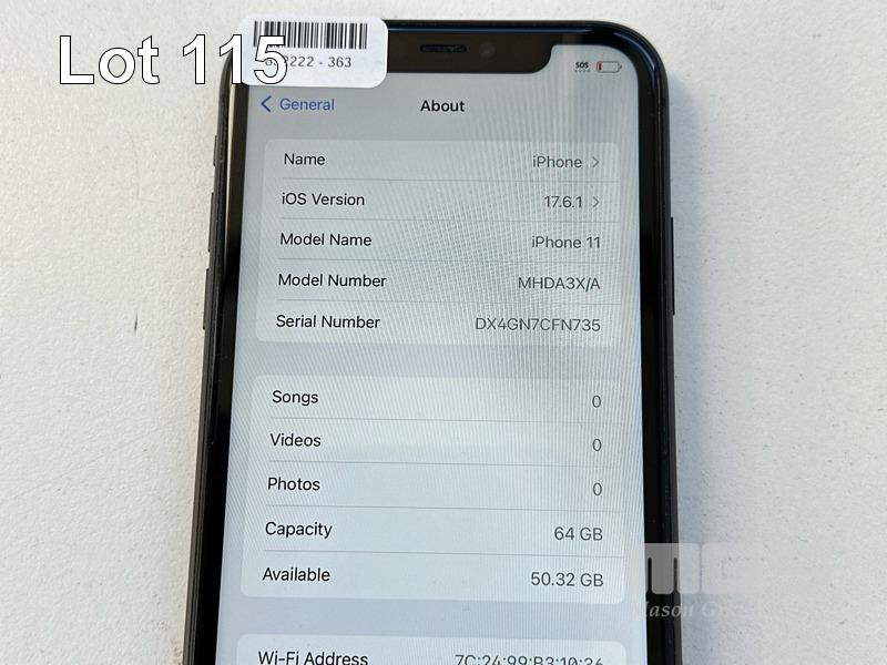 APPLE iPHONE 11, 64GB, MODEL MHDA3X/A, A2221, BLACK, BATTERY HEALTH 88% (NO CABLE, NO CHARGER) (NOTE: MINOR SCRATCHES ON SCREEN) S/N:DX4GN7CFN735
