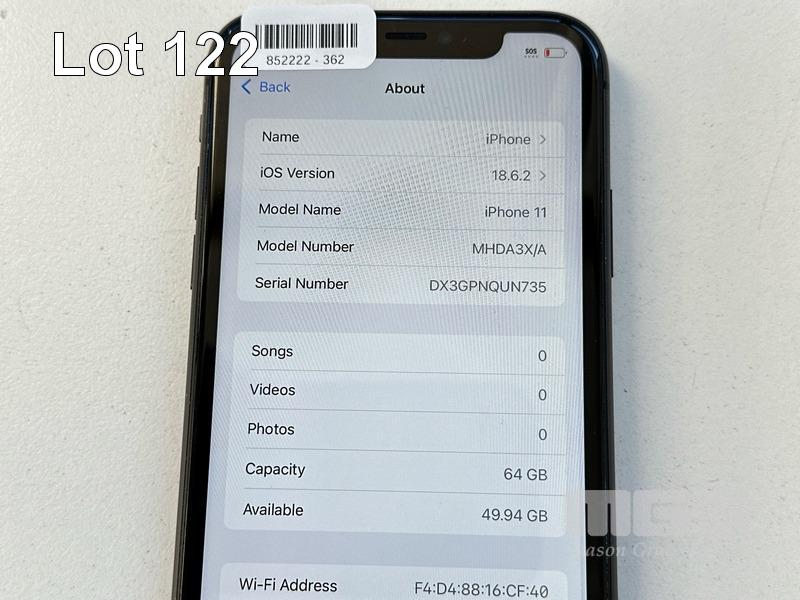 APPLE iPHONE 11, 64GB, MODEL MHDA3X/A, A2221, BLACK, BATTERY HEALTH 90% (NO CABLE, NO CHARGER) (NOTE: SCRATCHES ON SCREEN) S/N:DX3GPNQUN735