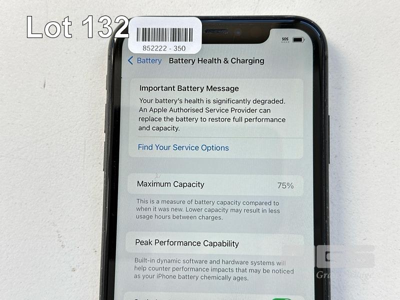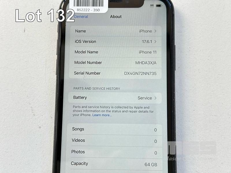 APPLE iPHONE 11, 64GB, MODEL MHDA3X/A, A2221, BLACK, BATTERY HEALTH 75% (NO CABLE, NO CHARGER) (NOTE: BATTERY SERVICE MESSAGE) S/N:DX4GN72NN735