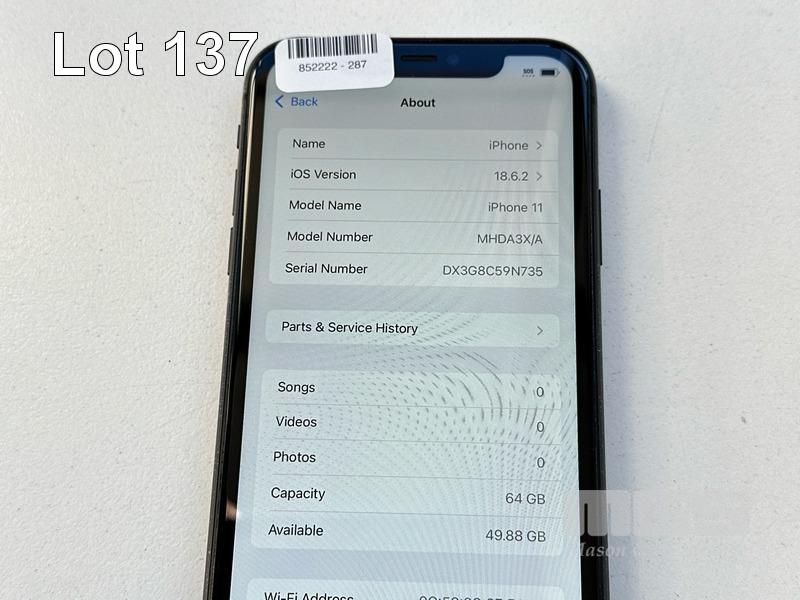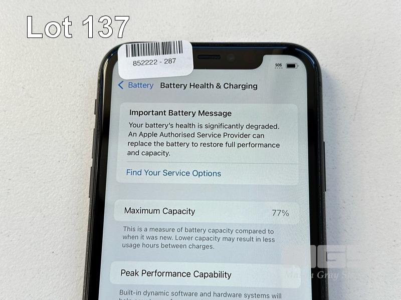 APPLE iPHONE 11, 64GB, MODEL MHDA3X/A, A2221, BLACK, BATTERY HEALTH 77% (NO CABLE, NO CHARGER) (NOTE: MINOR SCRATCHES ON SCREEN, BATTERY SERVICE MESSAGE) S/N:DX3G8C59N735
