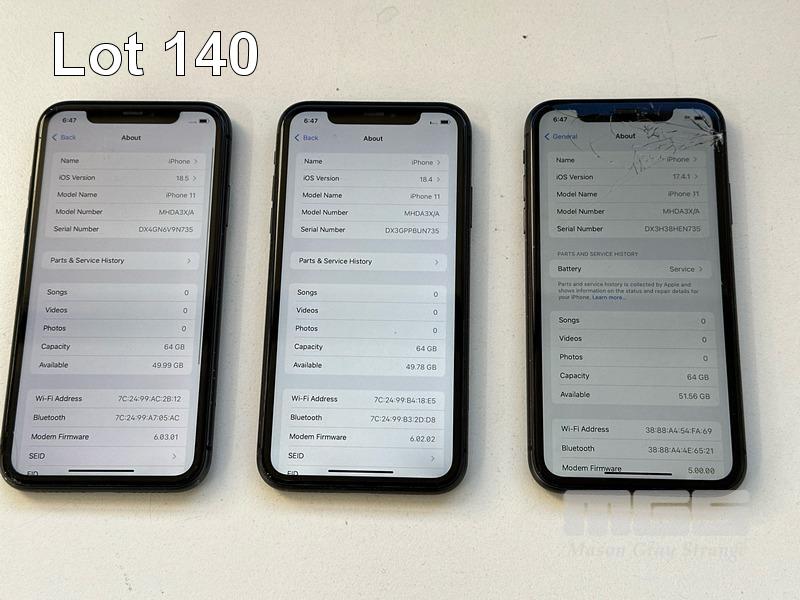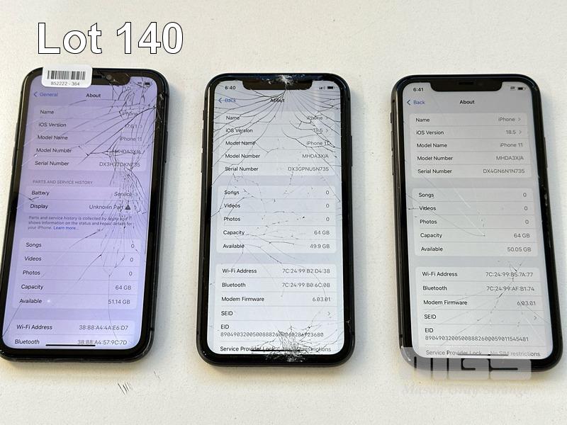 9 x APPLE iPHONES INC. - 2 x APPLE iPHONE 11, 64GB, MODEL MHDA3X/A, A2221 (DISPLAY NOT RECOGNISED MESSAGE) - 7 x APPLE iPHONE 11, 64GB, MODEL MHDA3X/A, A2221 (NO CABLES, NO CHARGERS) (NOTE: ALL VARIOUS DAMAGE) S/N:DX3H3TDKN735, DX3GPNU5N735, DX4GN6N1N735, DX4GN6QBN735, DX4GN6PNN735, DX3GQCCPN735, DX4GN6V9N735, DX3GPPBUN735, DX3H38HEN735