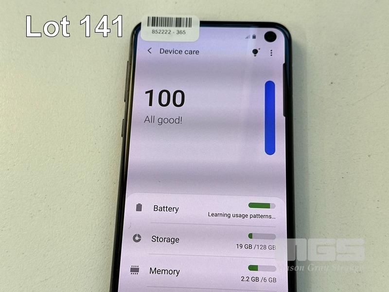 SAMSUNG GALAXY S10e SMARTPHONE, 128GB, MODEL SM-G970F (NO USB-C CABLE, NO CHARGER) S/N:RF8M308BSSY