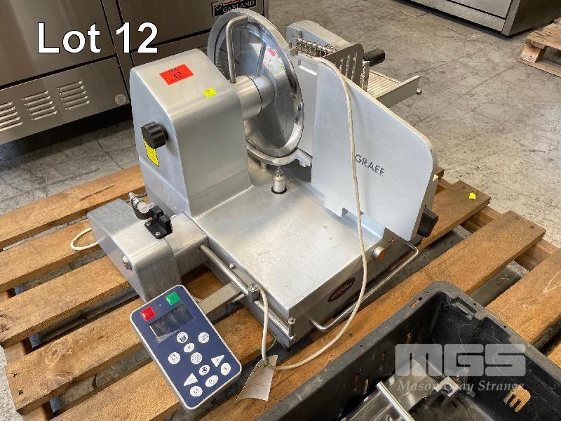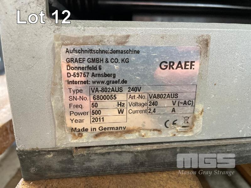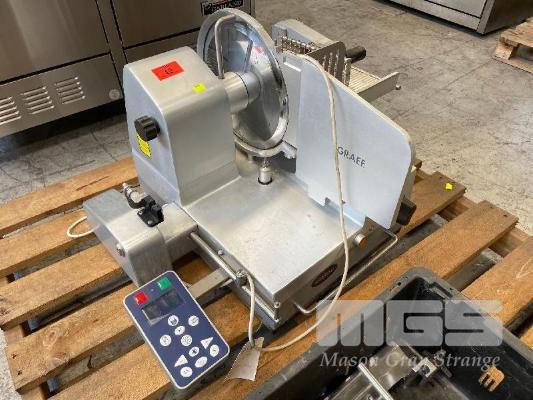 FULLY AUTO FOOD SLICER STACKER, GRAEF DIGITAL CONTROL PANEL & ATTACHMENTS, 4 x PROGRAMMABLE PLU'S MOD: VA-802AUS, 300mm BLADE DOM: 2011 240 V 10 AMP