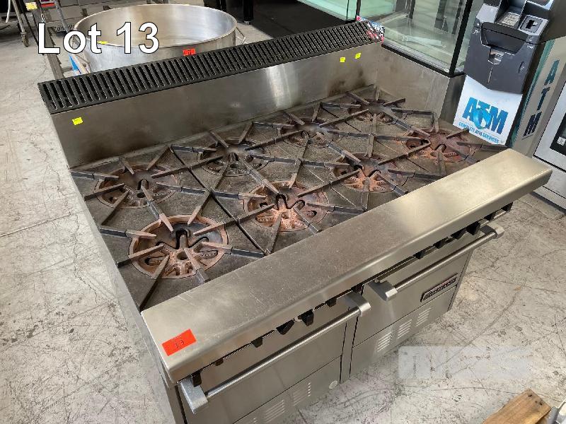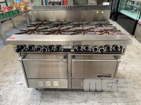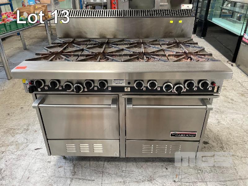 8 BURNER OVEN RANGE, GARLAND MOD: S288 S/NO: 0901100100914 TWIN COMPARTMENT OVEN, NATURAL GAS
