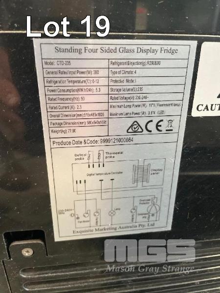 ILLUMINATED UPRIGHT DISPLAY FRIDGE, 3 TIER MOD:CTD-235, 4 WAY GLASS 240 V 10 AMP