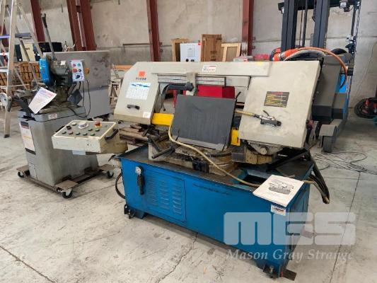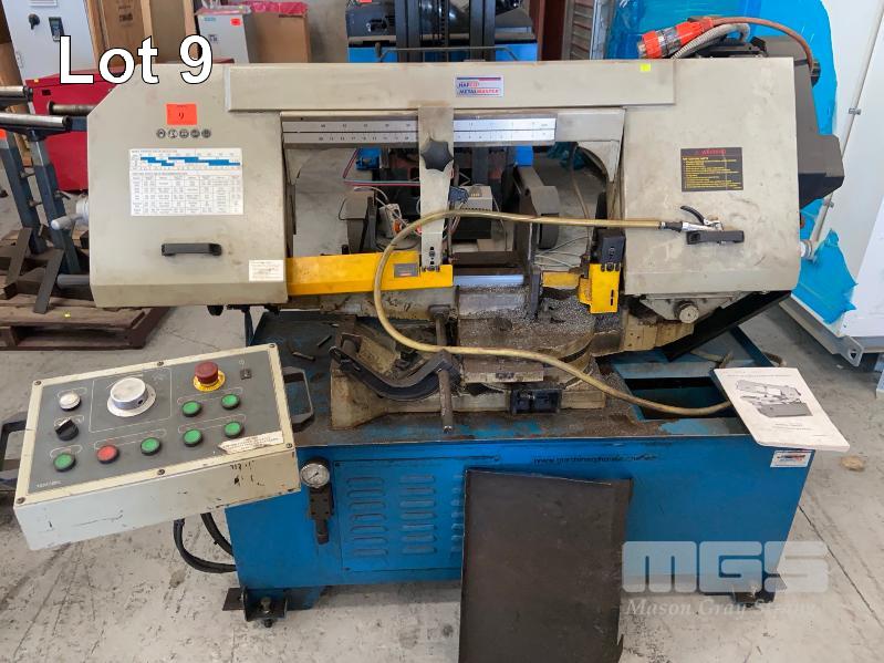 SEMI AUTOMATIC HORIZONTAL BANDSAW, HAFCO METALMASTER MOD: BS13DS WITH MANUAL 415V DUAL MITRE SWIVEL HEAD UP TO 60 DEGREES BACK STOP DOM: 2022 HYDRAULIC CLAMP COOLANT SYSTEM HYDRAULIC DOWN FEED VARIABLE