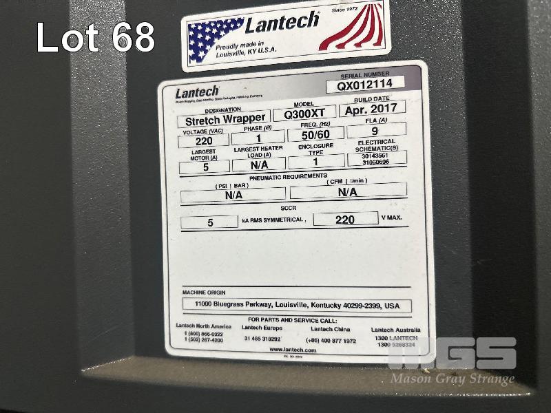 PROGRAMMABLE PALLET WRAPPER, LANTECH MOD: Q300XT DOM: 2017 240V