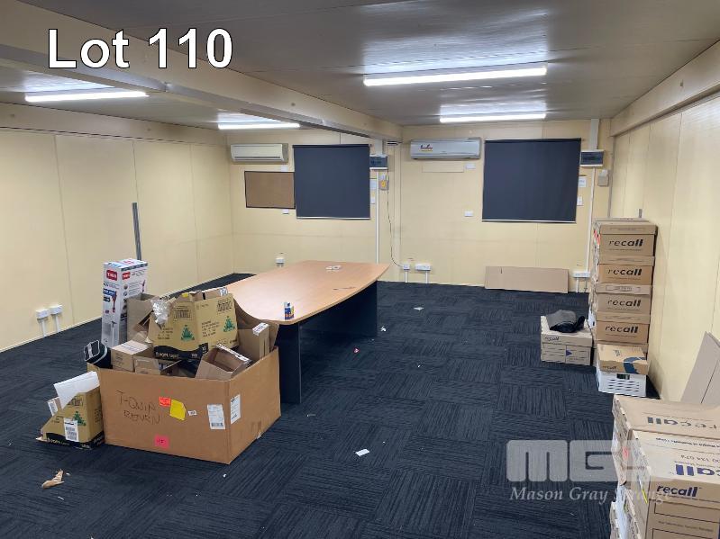 ATCO OFFICE COMPLEX 6 MODULE EACH, 12 x 3m CENTRAL OPEN PLAN WITH SURROUNDING OFFICES, SPLIT SYSTEM A/C'S & WHEELCHAIR ACCESS RAMP