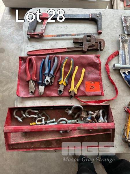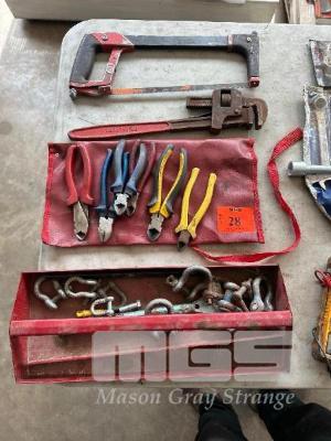 HACKSAW, MONKEY WRENCH, WIRE CUTTERS, SHACKLES, ETC