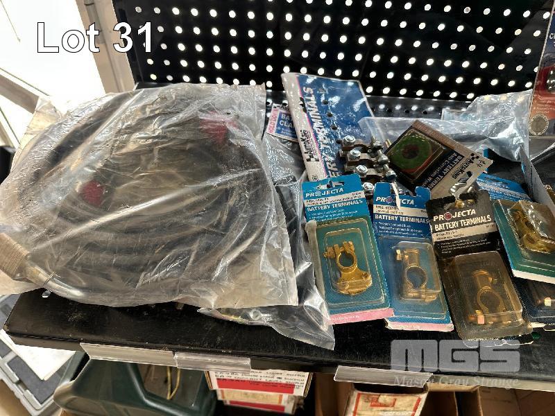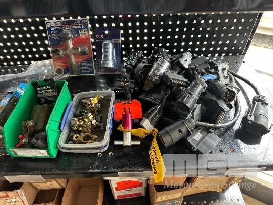 BATTERY TERMINALS, TRAILER ADAPTORS, CABLE LOCK SET, TERMINAL CLEANER CONTENTS 1 x SHELF