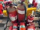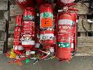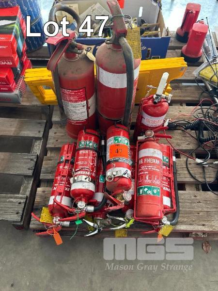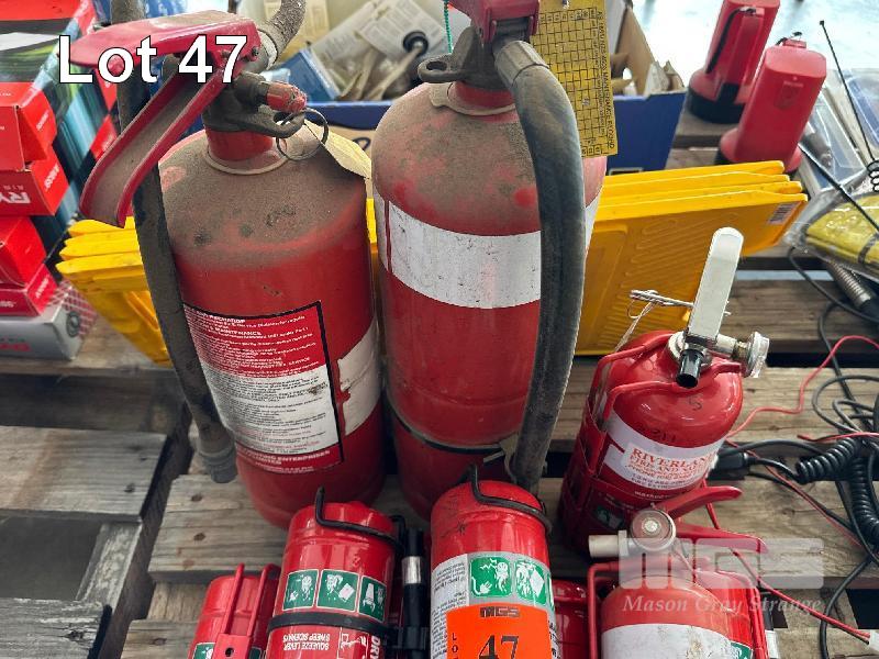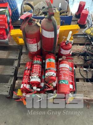 9 x FIRE EXTINGUISHERS, POWDER TYPE & 2 x WET FLOOR SIGNS