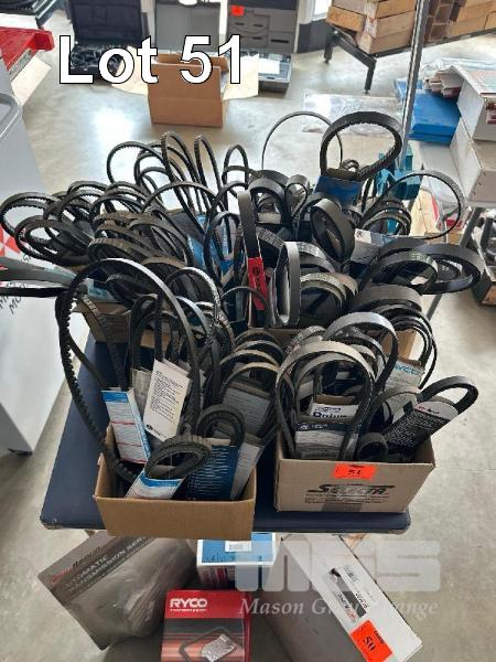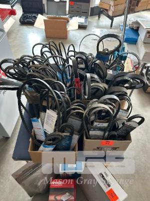 LARGE QUANTITY FAN BELTS & MEASURE TOOL