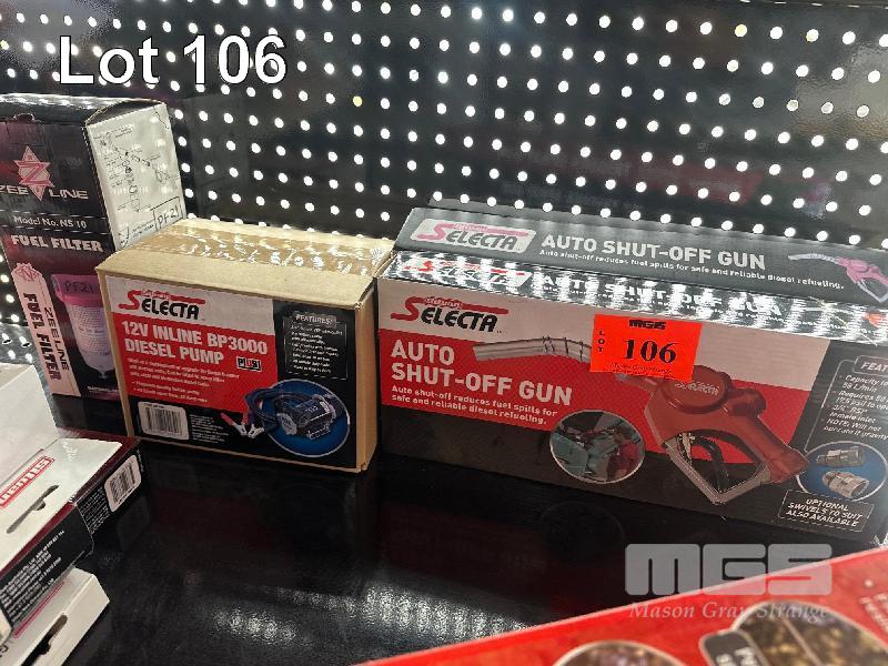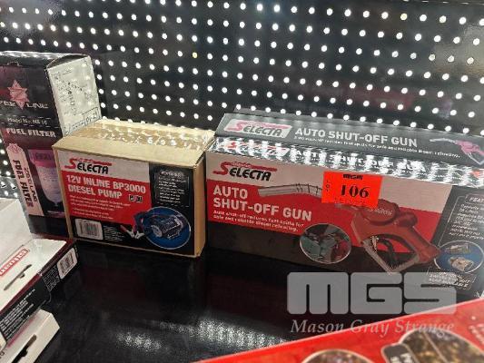 2 x SILVAN AUTO SHUT OFF FUEL GUNS, 12V INLINE DIESEL PUMP, MOD: BP3000 & ZEE LINE FUEL FILTER MOD: NS10