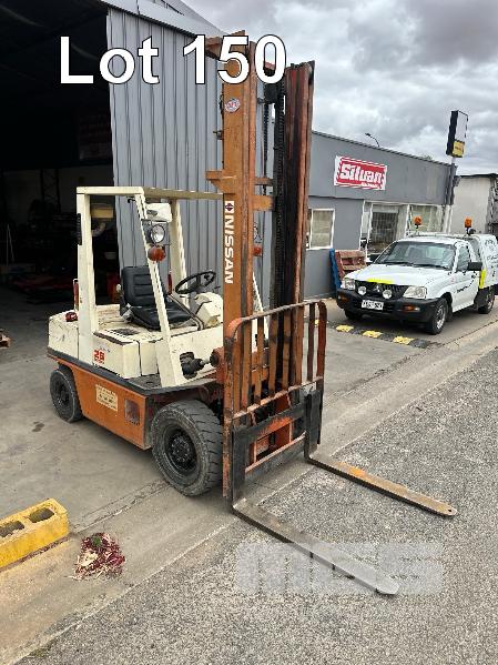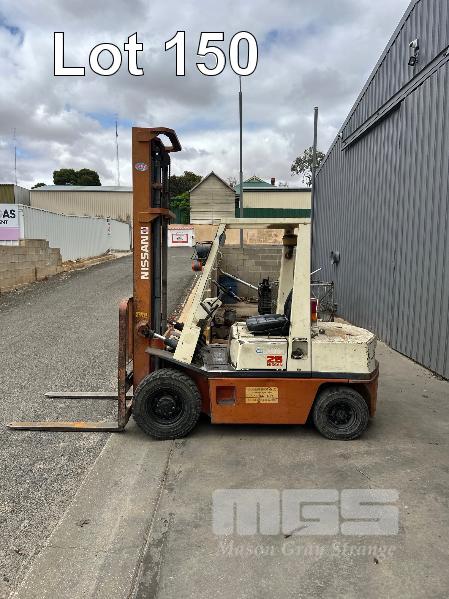 NISSAN EH02 25 DIESEL FORK LIFT MOD: EG02A25U S/NO: 010745 HOURS: 3958 SHOWING CAPACITY: 2100kg SEE THROUGH 2 STAGE MAST, CLOSED HIGHT: 2820mm MAX LIFT HEIGHT: 4500mm, PNEUMATIC TYRES