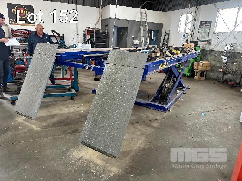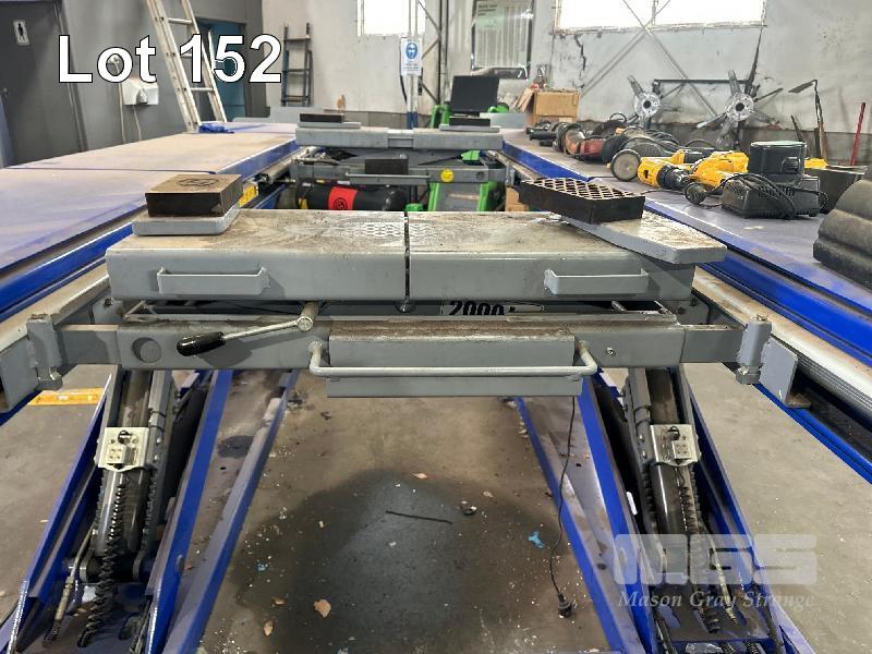 SCISSOR HOIST, CAIZER MOD: W45 MAIN: 4500kg WITH WHEEL ALIGNMENT CUTOUTS, 2 x AIR OP JACKING BEAMS, 2000kg EACH CONSOLE CONTROL, PENDANT CONTROL 415V