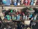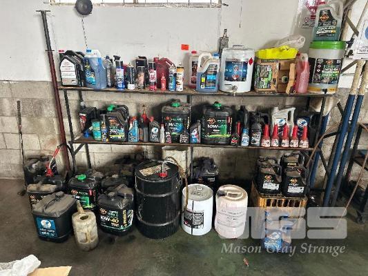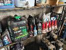 LARGE QUANTITY OILS, COOLANT BRAKE CLEANER, TUNE UP FLUSH, AEROSOL, PUMP, DE-SQUEAK, ETC