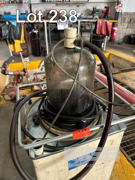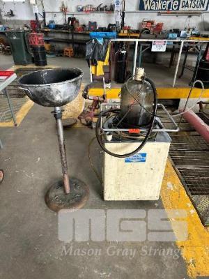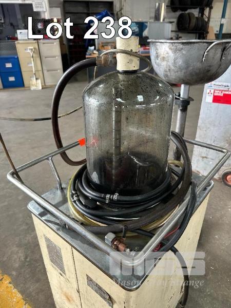 OIL CHANGERS, STILL WORKING! LIGHTHOUSE AIR OP VAC PUMP WITH TECALEMIT OIL DRAIN STAND