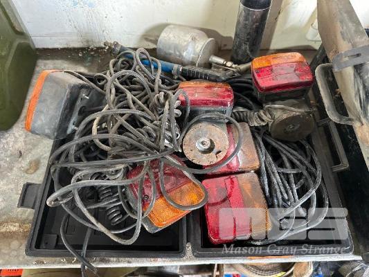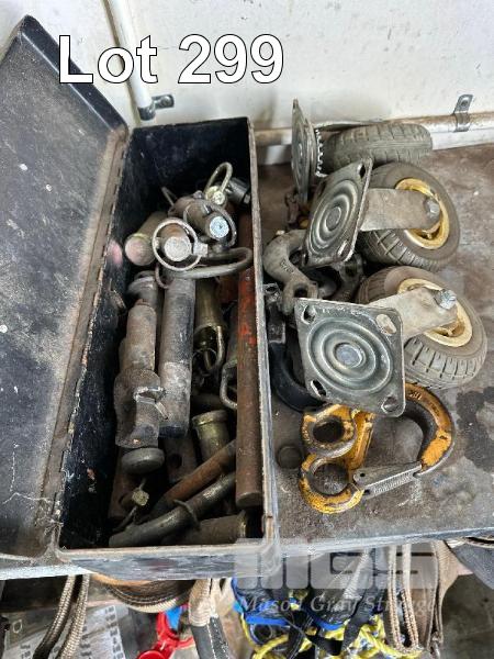 ASSORTED TRAILER LIGHT SETS, MAGNETIC PINS, CASTORS & HOOKS
