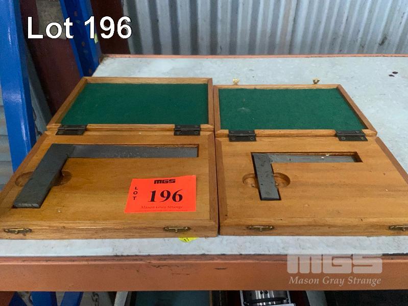 2 x STEEL SET SQUARES, 100 & 150mm IN CASES