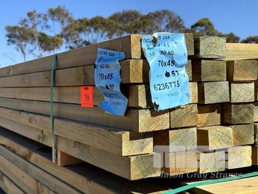 6236775 PACK OF CCA TREATED PINE TIMBER MERCH GRADE 70 X 45MM 57 LENGTHS 9/2.4,2/3.0,14/3.6,30/4.2,1/4.8,1/6.0 = 215 L/M