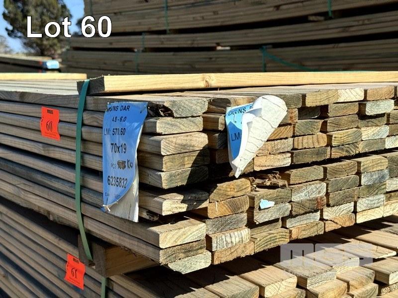 6235832 PACK OF CCA TREATED PINE TIMBER MERCH GRADE 70 X 19MM 100 LENGTHS 21/4.8,7/5.4,72/6.0 = 570 L/M