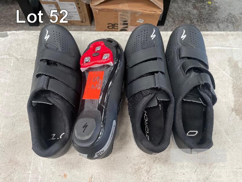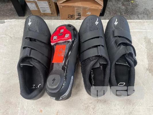 2 x PAIRS SPECIALIZED CYCLING CLEATS, BLACK/RED, WOMENS SIZE 10 / MENS SIZE 7