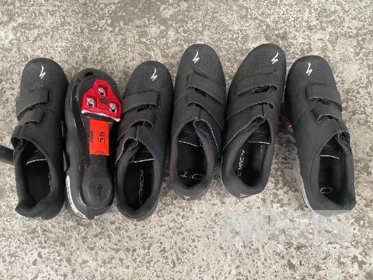 3 x PAIRS SPECIALIZED CYCLING CLEATS, BLACK/RED, WOMENS SIZE 11 / MENS SIZE 8