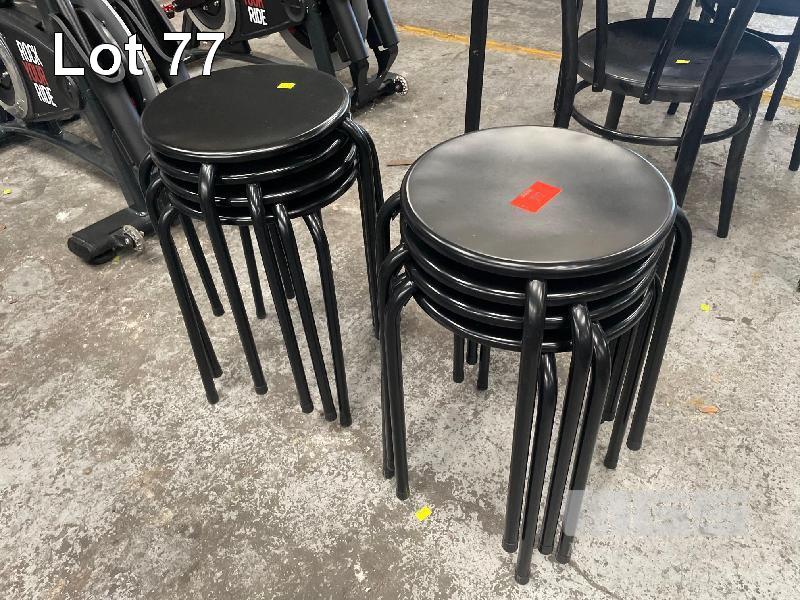 6 x BLACK STOOLS, STEEL, STACKABLE, 450mm (H)