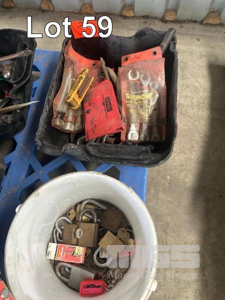 3 x TUBS TOOLS, INCL BRAKE SPANNERS, ALLEN KEYS, RATCHETS, PADLOCK & KEYS, TAPE REELS
