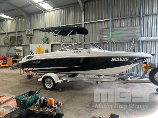 SAVAGE BOWRIDER RUNABOUT BOAT MOD: 195B 5.8 METRE DOM: 2013 REG: JE252S PAPERS, MANUAL HIN: CNTRX57515L213 POWERED BY MERCRUSER 220HP INBOARD OUTBOARD HOURS: 76 SHOWING SWIVEL SEATS, FOLD DOWN BIMINI FULL SAFETY GEAR, ANCHOR WITH ALLOY TRAILER, TECWATER SINGLE AXLE REG: S686 TFH