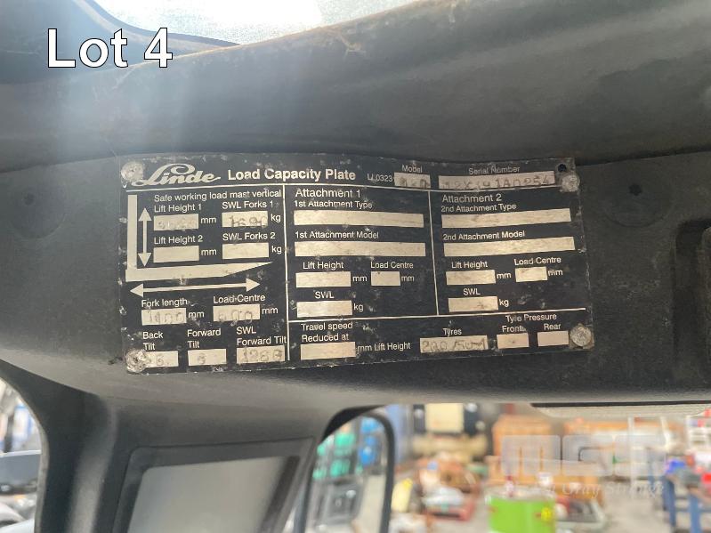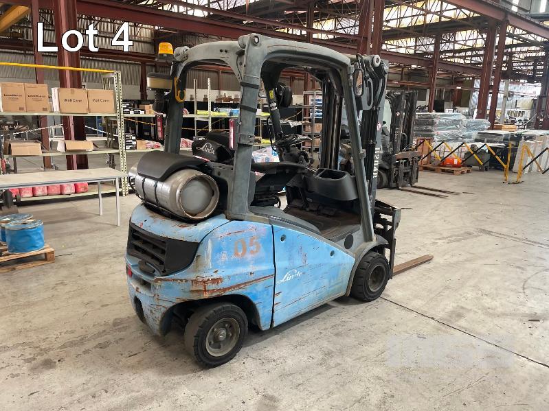 2010 LINDE FORKLIFT, TYPE: H20T-01, SERIAL: H2X391A02547, 2000kg CAP, MAX LIFT: 4625mm CONTAINER MAST, SIDESHIFT, TILT, BLADE POSITION, SOLID TYRES, 3 STAGE MAST DIGITAL CODE START: 67342#, HRS: 7949, LPG DOES NOT INCLUDE LPG BOTTLE
