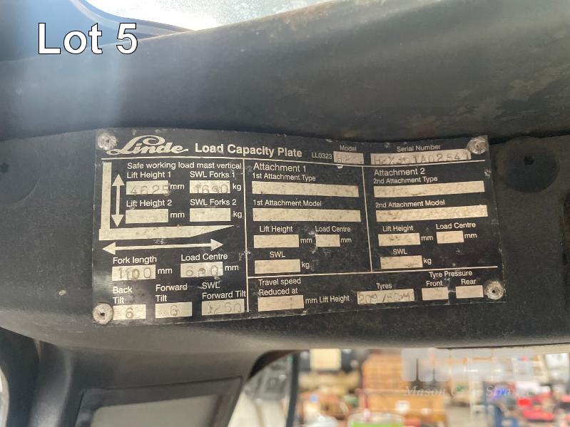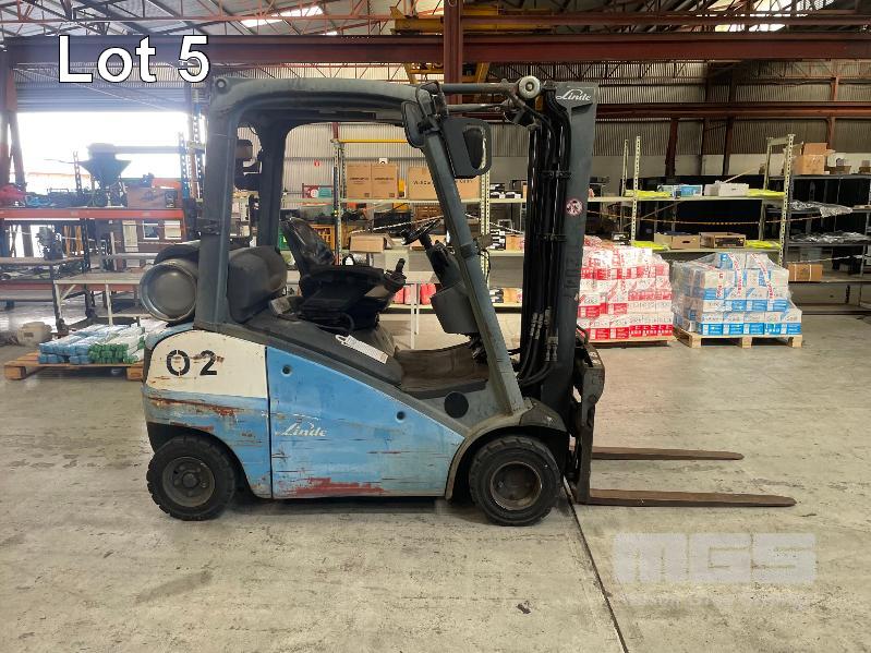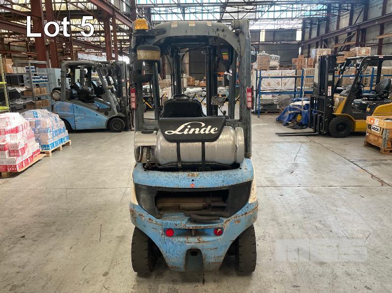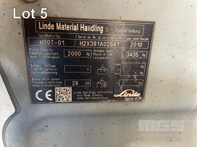 2010 LINDE FORKLIFT, TYPE: H20T-01, SERIAL: H2X391A02541, 2000kg CAP, MAX LIFT: 4625mm CONTAINER MAST, SIDESHIFT, TILT, BLADE POSITION, SOLID TYRES, 3 STAGE MAST DIGITAL CODE START: 67342#, HRS: 9322, LPG DOES NOT INCLUDE LPG BOTTLE