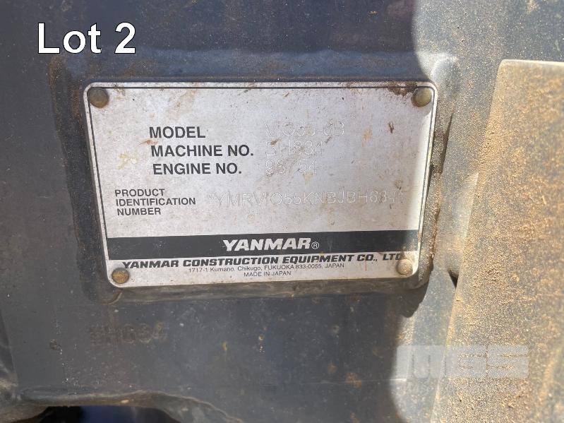EXCAVATOR, YANMAR MOD: VI055-6B DOM: 2022 REG: S86 SIV VIN: YMRV1055KNBJBH634 5 TONNE HOURS: 1,310 ROPS CABIN, PLUMBED FOR HAMMER, BUCKET SET RUBBER TRACKS, (INSERTS) (AVERAGE)