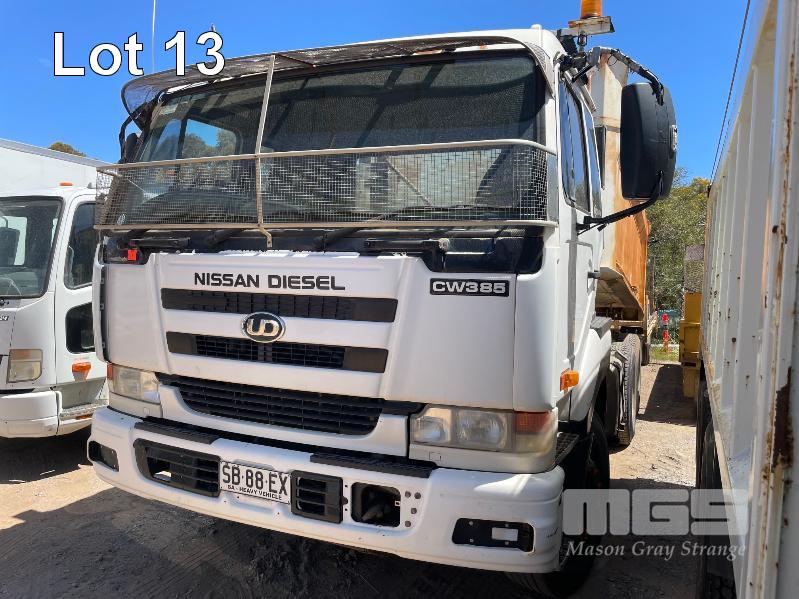 2007 NISSAN UD CW385 6x4 TIPPER REG: SB 88 EX VIN: JNBCWB48300H01464 ODO: 356,428kms SHOWING GVM: 22,500kg GCM: 42,500kg 6 CYLINDER EATON GEARBOX, 4200mm STEEL TIPPER BODY, 2 WAY GATE RING FEEDER, AIR BRAKES (WITH PAPERS, WITH 1 KEY/S)