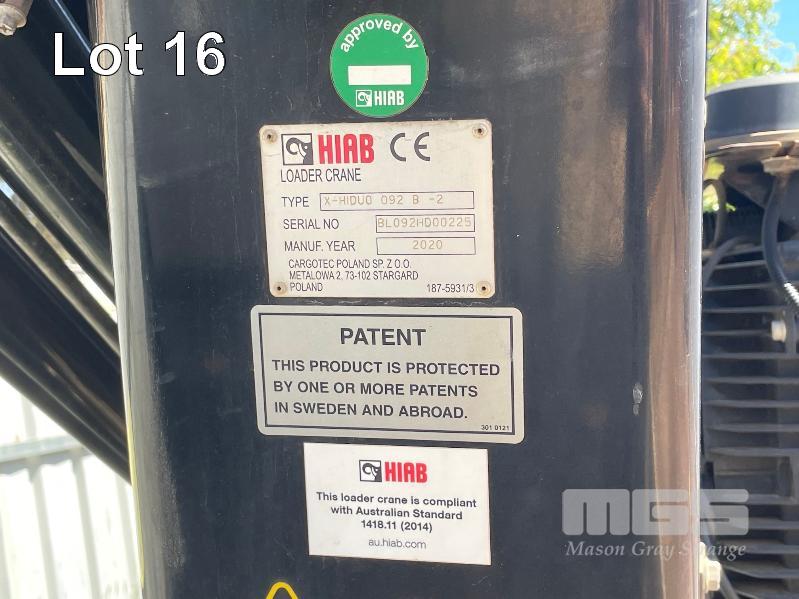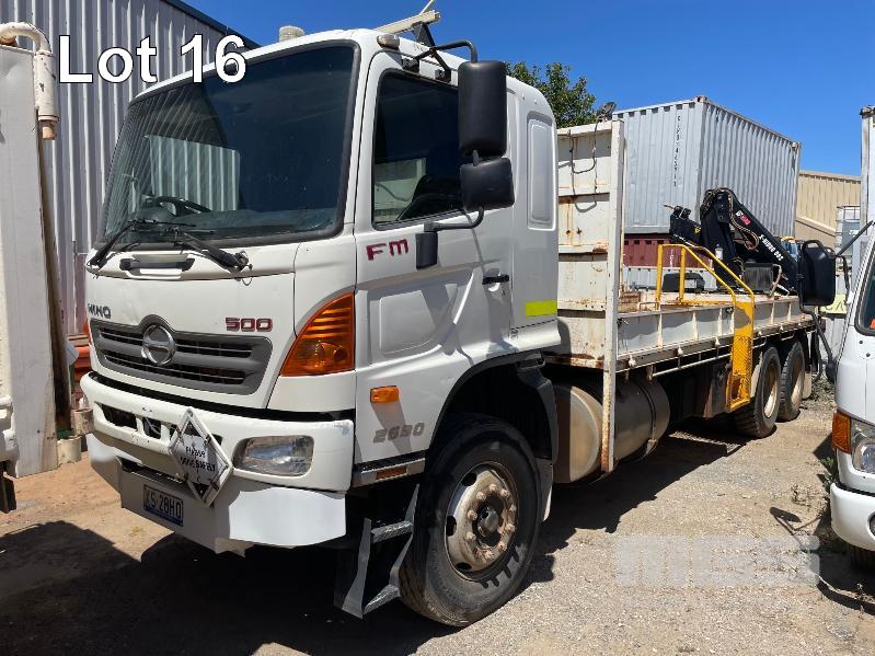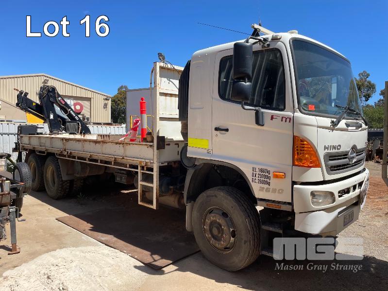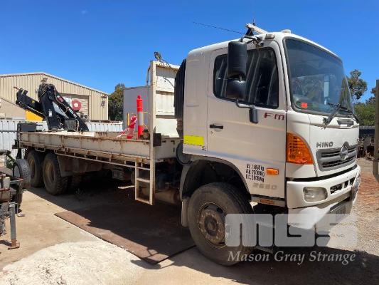 2010 HINO FM1J2630 6x4 REAR MOUNT CRANE TRUCK REG: XS 28 HO VIN: JHDFM1ARKXXX12031 ODO: 439,507kms SHOWING GCM: 26,000kg 6 SPEED SPEED AUTOMATIC TRANSMISSION, FITTED WITH 6200mm DROP SIDE TRAY & REAR MOUNT CRANE HIAB TYPE: X-H1DUO092B-2 DOM: 2020 29000kg @ 2.9m 600kg @ 11.3m (WITH PAPERS, WITH 1 KEY/S)