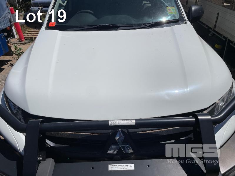 2019 MITSUBISHI TRITON GLX DUAL CAB TRAYTOP 4x4 REG: S569 CCB VIN: MMAZJKL10KH014498 ODO: 142,925kms SHOWING 2.4 LITRE TURBO DIESEL, 6 SPEED MANUAL TRANSMISSION, 4x4 AIR CON, CRUISE CONTROL, POWER WINDOWS, TOW BAR, ALLOY TRAY WITH CANOPY TOOL BOX (WITH PAPERS, WITH 1 KEY/S)