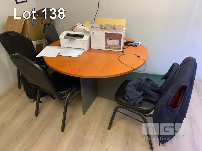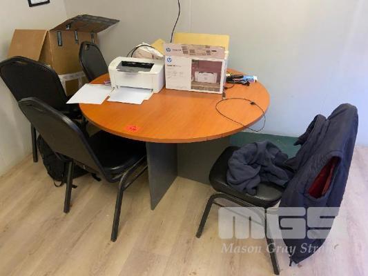 MEETING TABLE, 2 TONE LAMINATE, 1200mm DIAMETER & 4 x VISITORS CHAIRS