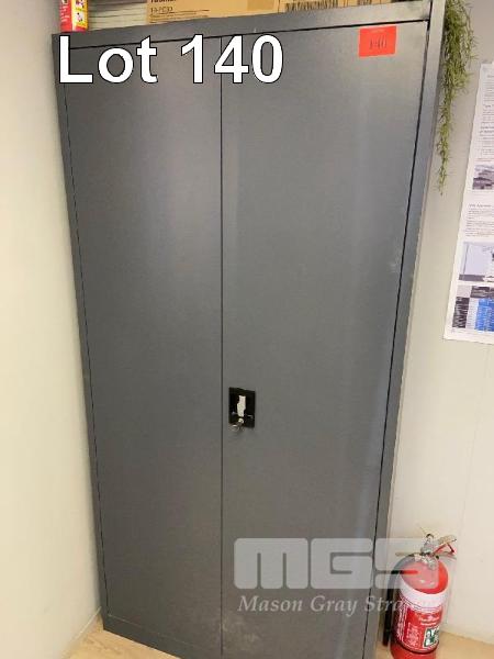 STATIONERY CABINET, STEEL, 2 DOOR, 180 x 90cm & 2 DRAWER FILING CABINET