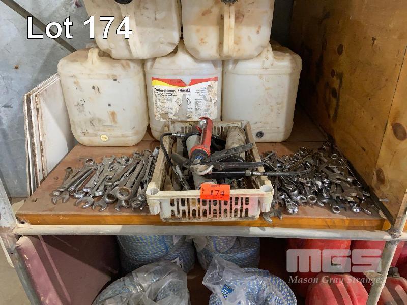 HUGE QUANTITY METRIC & IMPERIAL SPANNERS, 20 LITRE PVC DRUMS & 2 x GREASE GUNS