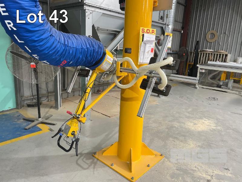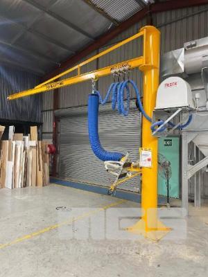 GHE LIFTING SWING ARM CRANE BOOM, FREESTANDING DOM: 2023 S/NO: 15662-2023-12 MAX RATED: 125kg WITH FEZER VACU POWER LIFT MOD: 230/A700 MAX CAP: 120kg WALK WITH CONTROL ARM OVERALL HEIGHT: 4.1m ARM LENGTH: 6.2m
