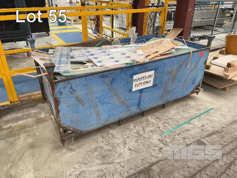 STEEL WASTE BIN & CONTENTS, PERSPEX OFFCUTS, 2200 (L) x 1150 (W) x 900mm (H)