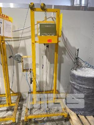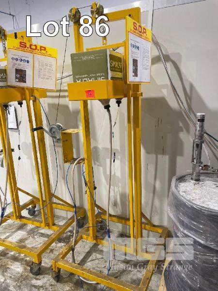 MOBILE RISE/FALL GLUING STATION, HAND WINCH, HOSES & SIMALFA GUN LOCKING CASTORS