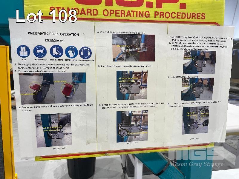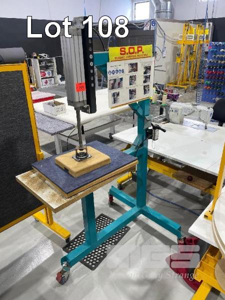 PNEUMATIC PRESS ON MOBILE STAND, HAND CONTROL VALVE, STOCK TABLE & ROTATING MANUAL PRESS, MOBILE