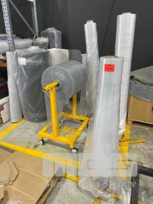 3 x PLASTIC SHEET VERTICAL ROLL OUT STANDS, HORIZONTAL BUBBLE WRAP, ROLL STAND, MOBILE