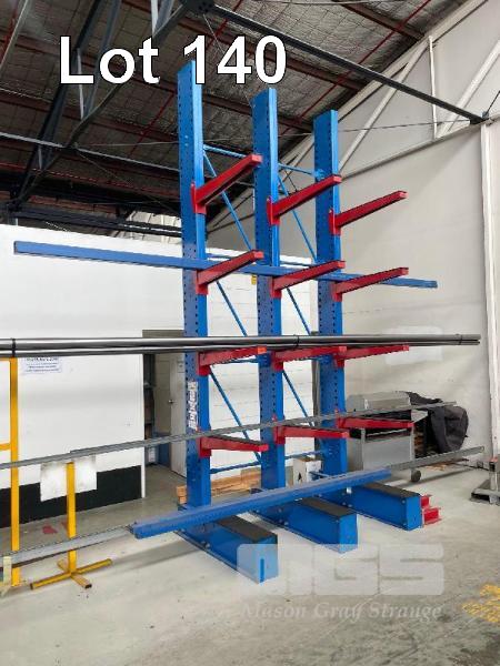 MODULAR STOCK RACK, 4.5m (H), 5 TIER, SINGLE SIDED 12 SWING UP ARMS, RUBBER COATED, 900mm (l0 COMPLETELY DISASSEMBLES