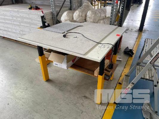 RISE/FALL WORK BENCH 1200 X 1200mm STEEL FRAME LAMINEX TOP
