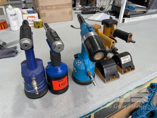 2 x BOSTITCH STAPLERS, 60-0562 & 3 x AIR RIVETERS, ADVEL & PNEUMATIC FORCE