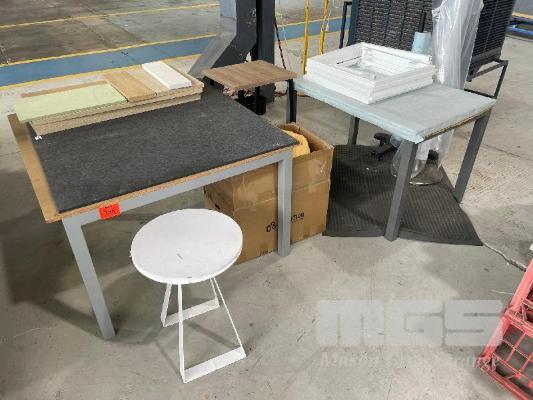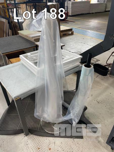 3 x SMALL STEEL FRAME WORK STANDS & 2 x PLASTIC WRAP STANDS