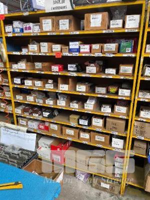 ASSORTED HARDWARE, SCREWS, FLOOR BOLTS, WASHERS, CONTENTS RACK, 8 x SHELVES