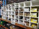 HARDWARE, NYLON SPACERS, WASHERS, NUTS, SCREWS, CONTENTS OF RACK PLUS CONTENTS OF WHITE PIGEON HOLES